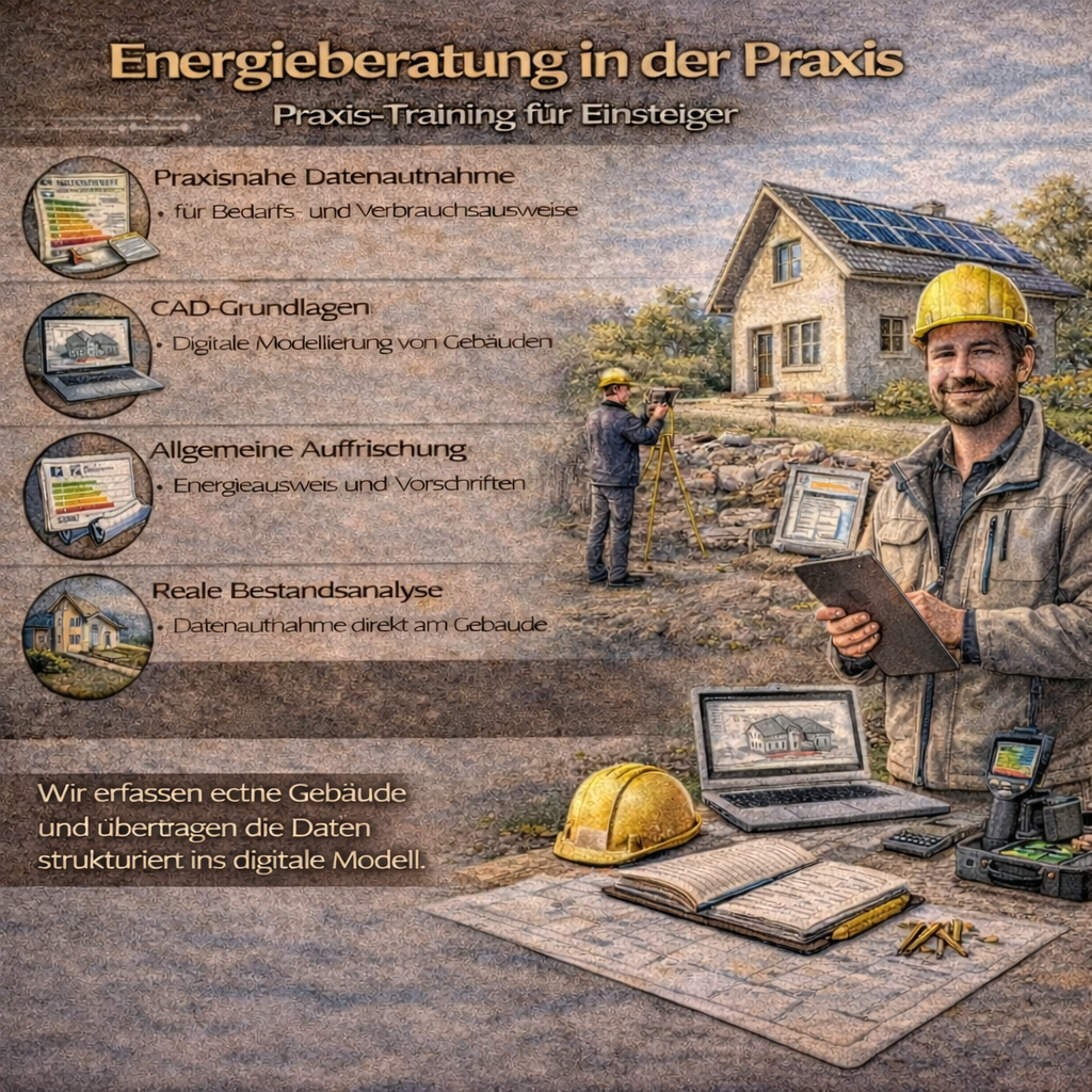 Dieses Training richtet sich an angehende Energieberater, Architekten, Ingenieure und Handwerksmeister, die Sicherheit in der Bestandsaufnahme gewinnen und effiziente Arbeitsabläufe etablieren möchten.